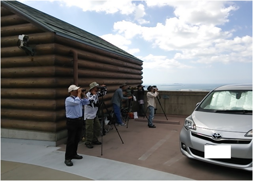| 高塔山公園内にある高塔山展望台(標高122m)は2階建ての広々とした展望台です。9月中旬からハチクマ、サシバ、ツミ他、シーズンで1000〜3000羽の渡りを観察することができます。ピーク時期に若戸大橋及び、戸畑工業地帯の上空に大きな鷹柱が上がることもあります。 | ||||||