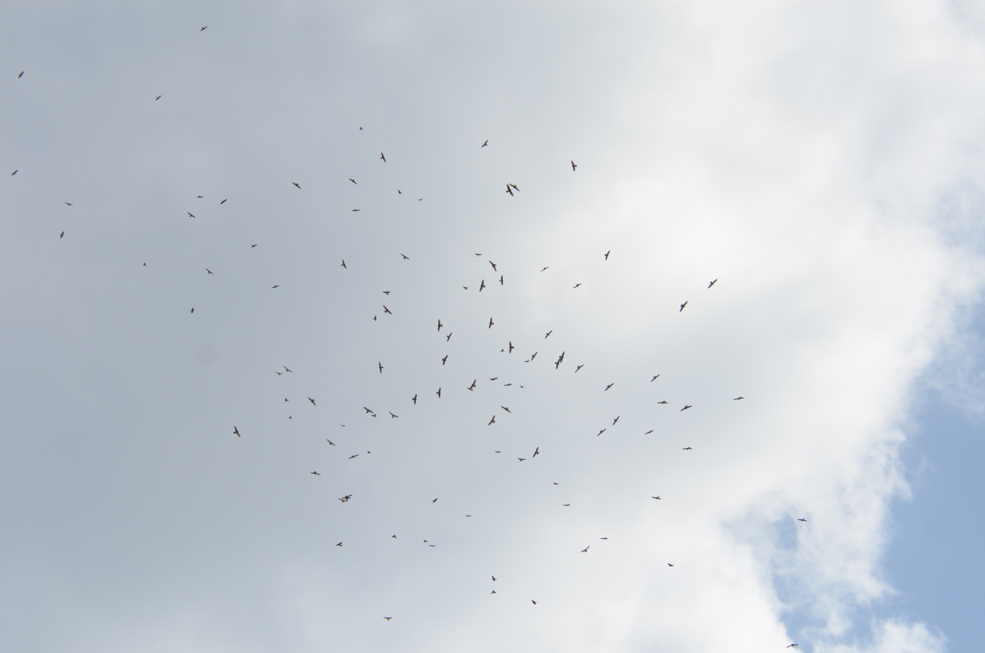 | 屋久島は種子島とともに九州の佐多岬から渡り始めたタカたちが最初に通る島です。屋久島は急峻な地形もあって上昇気流が発生しやすいようでサシバを中心に多くのタカが利用する中継地になっています。島内では天候などに応じて東西二手に分かれて沿岸を南下しており、栗生は西側ルートを通っていくタカたちを観察する場所になります。調査場所は栗生漁港にあるヘリポート付近。主に西側の山岳部沿いでタカ柱を作り南へ渡っていく様子が見られますが、頭上や東の海上を渡っていくこともあり。こちらもピーク時には1日で1000羽以上のサシバが渡ることもあります。島内でのサシバの動きは尾之間とほぼ同様。同じ島内でも天候が尾之間と大きく異なることがあり、そういった場合はどちらかに渡りが集中することが多いです。海べりですが見晴らしの良い場所で、晴天時には標高数mの調査地点から1500mを超える奥岳の一部が見えます。また、港湾内にウミガメがよく入っていて近くで見られることも。 | ||||||