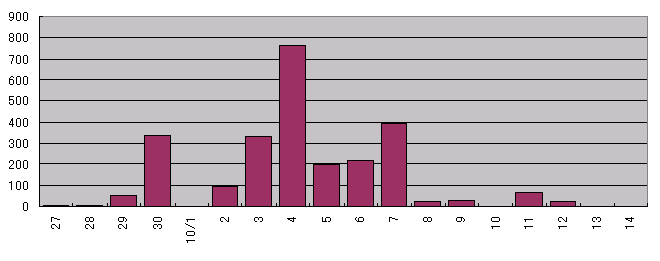 ![]() 2001年三重 伊勢市 タカ類通過羽数の推移