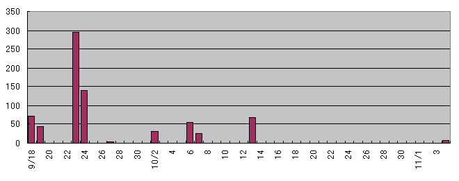 ![]() 2001年和歌山 加太 タカ類通過羽数の推移