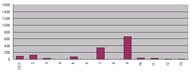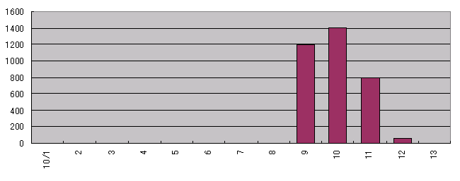 10/07 830〜1030にかけて出現が多かった。午後は、出現が少なかった。