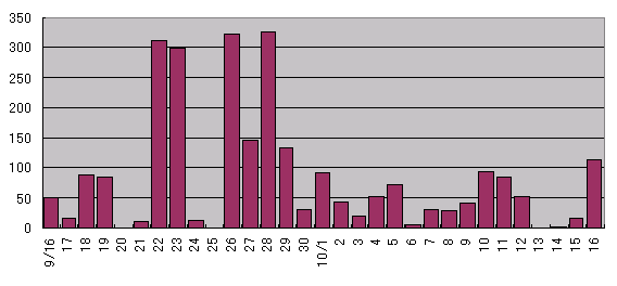 09/30 天気は良かったのですが、風の強い1日でした。今日は調査地の南側を通過する個体がほとんどでした。