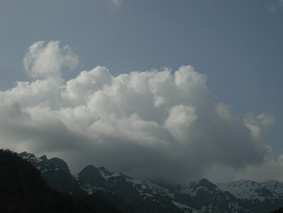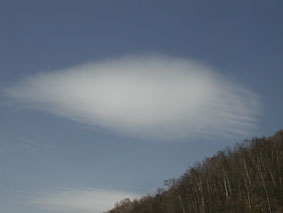 | 4/29 笠ヶ岳の頂上の雪が解け始めた | レンズ雲に近い雲 低気圧が近づいた証拠。 |