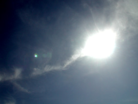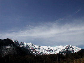 | 4/18 すっかり春模様、雪も減少し、時々落石の音。 | 日中、暑いくらいの太陽に巻雲がクロス |