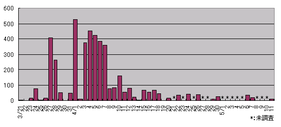![]() 2004年高知 みづき坂他 タカ類通過羽数の推移 ↑Topへ