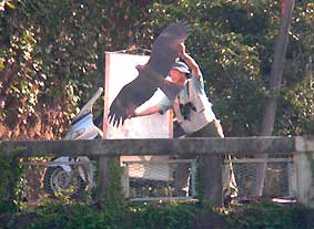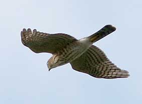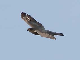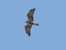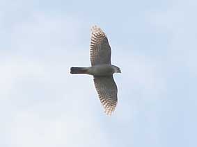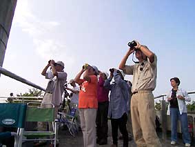 ○都合により今シーズンより日本野鳥の会岐阜県支部での金華山調査は中止されましたので、それを受け継ぎ有志体制で金華山調査を継続予定です。是非皆さん観察グループへご参加ください。情報提供者の集まりで規定会費もありません。野鳥の会・岐阜県支部以外の方でも大歓迎です。是非情報のご提供をよろしくお願いいたします。 _/_/_/現地からのコメント_/_/_/ ・調査にご参加いただきました皆さん。ご協力本当にありがとうございました。東向きハイタカの課題を残した今シーズン。予想をはるかにしのぐ、充実した調査記録が残りました。来シーズンもよろしくお願いします。ワイワイ楽しく、ホークウォッチング!また来年もやりましょう!(GKRMog 情報センター:熊崎) 11/23 狙い通り、ノスリ1400羽突破で感無量の見納めで大満足!予定変更で行った甲斐がありました。比較的コンスタントにノスリが出現しました。上昇気流がないのか、長時間旋回しているノスリが多かったです。(武知)、西出、塩谷 11/19 「ひょっとしたら飛んでるかも調査」に出かけました。まだまだ飛んでいます。いつまで飛ぶか気になりますが来週は・・・・・。ノスリ1390羽となりました。1400羽を超えるのは誰でしょう?(重栖)、武知 11/16 西風の中をサラサラと流れる美しいノスリで、完結です。(西出) 11/12 12日が今シーズン最終カウントでした。林、武知、西出、塩谷 11/10 残り少ないタカが、小春日和の空を渡っていきました。(山田)、塩谷 11/08 短時間に7羽通過した。(西出) 11/06をもちまして、金華山定点連続調査は終了させていただきます。皆様のご協力により心配していました新しいアバウトな組織GKRMogがうまくつながり大きな成果がでました。本当に調査おつかれさまでした。 今後は仁意調査に切替えて調査を11月中行う予定です。ご報告いただきました記録はこのまま更新いたしますので、是非データセンター熊崎までご連絡いただければ幸いです。 11/06 渡りは2羽だけ、それも同時に飛んでくれましたので、識別は容易でした(^^)vほかは岐阜基地航空祭の自衛隊機ビューン。10:30雨のため中止(小森H)、武知 11/05 今シーズンの最後をゆったり楽しむつもりで出かけましたが逆方向に飛ぶハイタカを見て余韻どころではありませんでした。13羽も逆に行くとやはり逆行といえるでしょうか?今後の観察が楽しみです。(重栖)、武知、林、西出、塩谷 11/04 どの個体も低く、渡りの存在を知った観光客の方々が無心になって旅鳥を見送る姿がありました。生き物を、命あるものをカウントする自分の心に欠けていたものはなかったかと教えられた、最高に美しいひと時でした。(西出)、塩谷 11/03 朝から雨。時より強く降る天候で渡る小鳥も渡る気配なし。曇天の展望台に立っても時より小雨が降り、展望台下へ雨宿りを強いられる。ノスリが出ては降りる。見える範囲でも数羽は確実に常緑樹林帯に留まっている。ノスリ1300羽over!今日は夢で終わる。(熊崎)、山田、小森N、菅谷、武知、塩谷 11/02 さすがに朝のヒヨドリの渡りは見られない中、9:23チュウヒが特有のV字セーリングで通過。ノスリが多くなったのは11h以降でいずれも高度は高い。(熊崎)、重栖、林、塩谷 10/30 朝から快晴。午後から少し雲が出てくる中、高い高度でノスリが渡る。手作り料理で楽しい芋煮会。重栖、小森さん両ご夫妻どうもありがとうございました。調査は11月第一週程度まで継続予定ですが、とりあえず今シーズンの締めくくり。(熊崎)、重栖×2,小森H&N,山田、菅谷、馬渕、池野、武知、塩谷 10/29 朝5h頃から雨。ようやく止んだのが15h。一時青空まで見えたが既に時間遅く、タカ類渡らず。(熊崎) 10/28 ノスリ総数34。10時台に17。しかし、観察者は多くてにぎやかでした。(丹羽)、山田、武知、広瀬、恵良、塩谷、西出姉妹 10/27 岐阜市内は夜雨が降ったとかで光と影の強い道をあがると無風の青い空。うららかな秋空でした。(丹羽)、小栗、塩谷。14時過ぎから15時頃にかけて次々とノスリがやってくる。14時30分には24羽の鷹柱が頭上に出現。(山田)、西出 10/26 さすがに10月も末になるとタカ見の人も少なくなりました。それでも愛知・岐阜で6人。(丹羽)、浅井、亀地、祖父江、加藤、塩谷 10/25 午前中はほとんど渡り個体なし。数が少ない分ジックリ個体を見た。結構満足(^^ゞ。(熊崎)、林、丹羽 10/24 調査時間の内13:00-13:30間は未調査。小森H、山田、西出、曽我、塩谷 10/23 今日は晴れから急に雨になり展望台の下で2時間空見上げてじっとがまんして待ちました。その後、天気はゆっくり回復し、雲が切れ小さく青空も見え始めたら、ノスリが次々とやってきました。(小森N)、菅谷、武知、山本 10/22 午前中は不安定な天気のため雲間に消えたノスリが突然現れたり、戻ってきたりとカウントに神経を使いました。午後からは順調に渡って行きました。(重栖)、武知、林、岡田 10/21 午前中快晴だったが、徐々に雲が出始めて14hには青空をおおう。朝から高い高度で通過。(熊崎)、西出、丹羽 10/