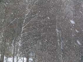 4/04 重い新雪が20〜30cm積もってました。どんより低い雲が垂れ込めており、渡りがある雰囲気ではなかったです。夕方には青空も見え始めましたので明日はいいかも!?(住)
