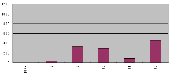 10/07 9時台と13時以降にまとまった渡りが観られた。