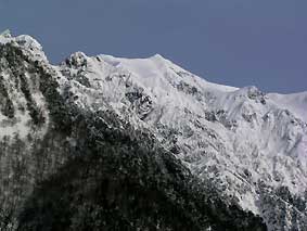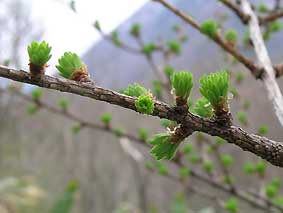 | 4/9 サシバ舞う雪稜。 | 5/6 ようやくカラマツが芽吹いてきた。 |