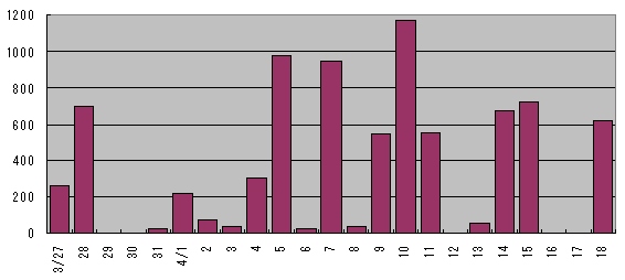 ![]() 2006年青森 龍飛崎 タカ類通過羽数の推移 ↑Topへ