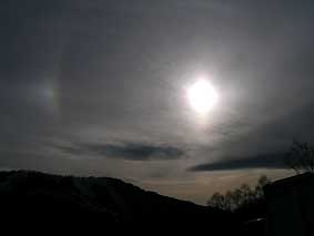 | 0330 雨雲が湧く「大木場の辻」。終始こんな状況 | 0406 帰宅途中で見られた幻日(平湯峠) |