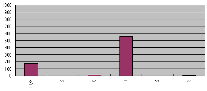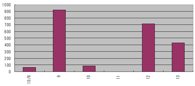 10/13 東風が強く、午後に逆方向へ600羽ほど飛んでいった。(江田)