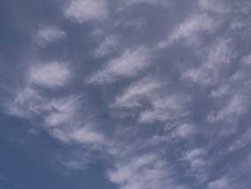 4/05 満開の桜の花びらが、風にのって雪のように時々舞ってきました。レースのような雲の空、霞もあり見えてないのか、飛んでいないのか?(小森N)