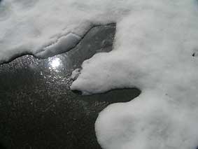| 0322 快晴の兆し | 0322 気温上昇。残雪は割れて解け、広がる水溜。 |