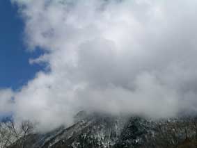 | 4/20 急速にガスが切れた笠ヶ岳 | 5/12 ようやく芽吹きはじめた定点 |