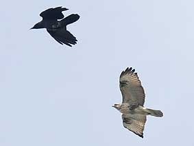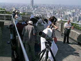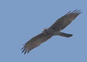 ○今シーズンも昨年同様有志体制で金華山調査を継続予定です。調査していただける方も減少しており、是非皆さん観察グループへご参加をお待ちしております。情報提供者の集まりで規定会費もありません。岐阜県以外の方でも大歓迎です。是非情報のご提供をよろしくお願いいたします。 詳細は→ 金華山タカの渡り観察グループ _/_/_/現地からのコメント (報告者)_/_/_/ 11/28 11時頃に頭上でノスリ3羽が舞った。トビが飛びながらヘビを食べるところが見られた。(長瀬M),山口,岩田,他2名 11/25 (山口),他1名 11/23 今日は10:00から12:30の間にノスリやハイタカ属が出て、ほとんどが近くを飛んだので見分けができて楽しかった。(長瀬M),横溝,高橋,山口,塩谷,岩田,他2名 11/22 無風でしたがなまり色の空、冬を思わせました。一気に飛び去るオオタカが急いでるように感じました。渡りももう終わりかなー。(小森N)小森H,山口,塩谷,他1名 11/21 もう渡りも終盤で寂しい展望台かと思いましたが、観察者も多くにぎやかで、ノスリが答えてくれるように渡りを見せてくれました。(小森N),重栖,道家,高橋,山口,他1名 11/16 朝から雲が多く、無風であったが日差しが無いと寒い。今シーズン2回目の環天頂アークがでる。岐阜金華山の今秋の調査公開は、本日で終了とします。調査に参加された皆様お疲れ様でした。翌 春季調査へも是非ご参加お願いします。(熊崎),林,塩谷,山口,他1 11/15 早朝は無風だったが、10h頃よりWNWの風が強くなり展望台では冬装備!。渡り個体は少ないくなり金華山、周辺に下りるタカが多くなった。(熊崎),大谷,高橋,山口,稲石,塩谷,長瀬M,他1 11/14 高橋、山口、岩田、他1 11/12 午前中、赤白の鉄塔にハヤブサ、オオタカjuv がそれぞれ長い時間とまってくれたので良く観察できた。(道家),小森N,他2 11/09 今日も暖かい。渡る気配がなくハイタカ、ツミ、オオタカ共に地付。その中ハイタカ♂Adが空中で小鳥を狩るのを見れたのはラッキー!。(熊崎),長瀬×2,大谷,塩谷,岡田,他 11/08 昨日に引き続き暖かい1日。朝は曇天であったが、次第に青空が広がる。地付個体の出現が活発で渡り個体は少なかったが、ハイタカ属の識別が楽しい。16hから長瀬君の標本で羽根の研修会。識別に新たな見方が加わり、皆 羽根の構造に夢中となった。引き続き17hから今秋期の芋煮会。美味しい手料理と話で大いに盛り上がる。(熊崎),長瀬M,,長縄×2,重栖,小森H・N,大谷,道家,岩田,横関,大道寺×2 11/07 快晴の暖かい1日。調査は雲が出ず、秋霞がかかり高いタカが空に消える状況で辛かったが、調査者の多いためか話題が絶えない嬉しい1日。9-11hに多くノスリが通過。(熊崎),長瀬M,林,菅谷,小森N,池田×3,大谷,武知,高橋,西出,横関,岩田,他 11/06 ひょうたん山の方角のから出て来て、真上を通って行くコースをとるのが多かったです。(池田×3),塩谷,他3 11/05 (大谷),塩谷,他 11/04 (大谷),池田,塩谷,西出他 11/03 北の山並みはうっすら雪化粧で、一日中北風が吹き少し早い防寒姿での観察となりました。(重栖),大谷,武智,塩谷,西出,他数名 11/02 小型SP、ツミ、オオタカ、ハヤブサなどが出ても、渡りませんでした。(大谷),塩谷,西出,他1 11/01 午前中を期待して、雨を覚悟に調査に入ったが、朝の霧雨も上がり一時期青空になる。12:50ころノスリが木に止まったかと思うと急に暗くなり雨が降り出す。(熊崎),小森N,池田×3 10/31 午前中は低くたくさん出た。10時20分ごろ21羽のノスリのタカ柱ができた。午後は全く出なかった。(長瀬M),大谷,道家,西出,塩谷,他 10/30 秋霞の1日。今日もノスリの渡りが途絶えない。ハイタカ属の出現が楽しい1日。逆渡りのコノリ「ハイタカAd♂」が美しい。(熊崎),林,大谷,塩谷他1 10/29 10:35-11:00,14:25-14:50の2回50羽前後のピークが見られた。(大谷),塩谷,他1 10/28 どの個体も見つけやすく、午後はハヤブサがハトを運び、鉄塔で食す場面もみられました。(大谷),西出,塩谷,他1 10/27 今日のノスリ達はほとんどが同じコース。金華山と百々ケ峰の間を西へ流れ双眼鏡でしか見つけられないほど遠く、高い。雲があるうちはまだよかったですが青空だけになるとお手上げ、見落としもあったと思います。(小森N)、他1 10/25 ほとんどが午前中に渡っていきました。12:25ハチクマjuvがでました。(小森H),大谷,塩谷,池田×2,道家 他 10/24 午前中はさっぱりでしたが午後の一時間半でほとんどが渡りました。曇り空のため高度を上げるのに時間がかかりゆっくり観察できました。(重栖),長瀬×2,塩谷,酒井,他数名 10/23 午前中に40羽通過。塩谷 10/22 高く高くすべて単独で渡っていきました。(道家),塩谷,林,西出他 10/20 午後から陽射しもありましたが北風で寒い展望台でした。双眼鏡でしか見つけられないほど高高度を渡っていきました。(小森N)、大道寺、塩谷 10/18 午前中はかすんだ青空でしたが、やがてスッキリした青空になり主役のノスリたちは高高度で行くもの、肉眼で充分識別できる高さを行くものさまざまでした。ミズナギドリSP2,アトリ20±(小森N)、福井、桑原、武知、恵良、塩谷、山田(Y)、高