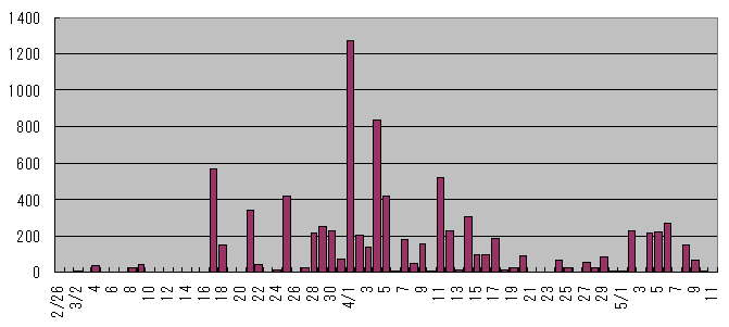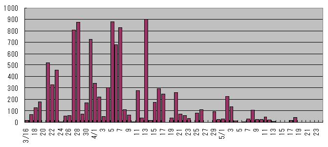 ![]() 2009年青森 龍飛崎 タカ類通過羽数の推移 ↑Topへ
