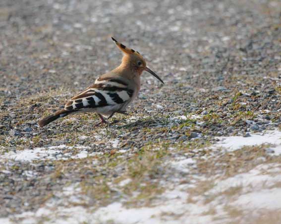 | 雪に降られ、寒そうなヤツガシラ(3月25日) |