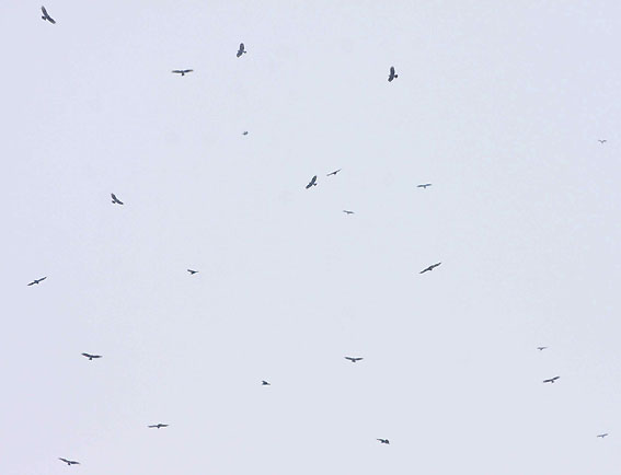 | 岬近くの上昇気流に集まるノスリたち(4月4日) |