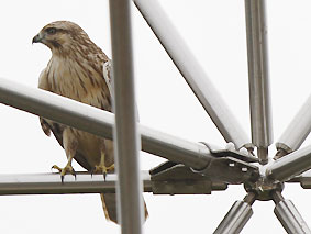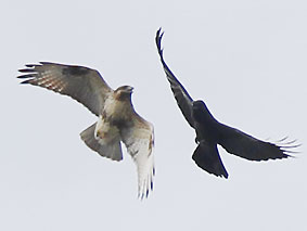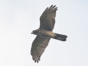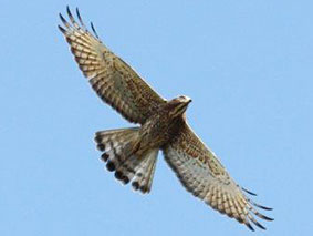 ○今シーズンも昨年同様有志体制で金華山調査を継続予定です。調査していただける方も減少しており、是非皆さん観察グループへご参加をお待ちしております。情報提供者の集まりで規定会費もありません。岐阜県以外の方でも大歓迎です。是非情報のご提供をよろしくお願いいたします。 詳細は→ 金華山タカの渡り観察グループ _/_/_/現地からのコメント (コメント)_/_/_/ ◇:金華山重点調査地点(定点北側へほぼ直線に伸ばした地点) 11/16 快晴の空の下、ノスリがのんびりと渡る。ハイタカ、オオタカも出て陽射しがポカポカ!気持ちいい渡り調査となる。まだアサギマダラ1通過。定点として調査終了しますがまだまだ、ハイタカ属は楽しめそうです。調査に参加された皆様大変お疲れ様でした。(熊崎),大谷,大道寺,小森N,長瀬M,林,小出,他 11/14 今日は、風の無い暖かい日でした。渡らないハイタカが、たまに出てきて遊んでくれました。渡りは、もう終わりかな。(道家),加藤 11/09 今日は風の無い穏やかな日でした。今日は、カワアイサ1羽、マガモ14羽が、見られ水鳥の日でした。(道家),大道寺,大谷,加藤,岡田,岩田,他 11/08 14時まで均等に、のんびりとノスリが渡りました。(瀬古),大道寺,加藤,岡田,武山,他 11/07 加藤 11/06 大道寺,加藤,大谷,道家,武山,他 11/05 今日は、風がほとんど無い穏やかな日でした。タカも午前10時以降渡りが見られませんでした。(道家),大谷,大道寺,岡田,他 11/04 大谷,山田,大道寺,三輪Ta,小出,他 11/03 早朝は降り出しそうな天候でしたが、やがて雲が高くなり一部に青空が見え隠れ。しかし見通しは悪く、PM2.5の影響か?霞がかる。そんな空の下をノスリが適度な高度で通過する。11:50頃チュウヒが通過&イスカ8もでて満足な調査となる。昼食は打ち上げの恒例の芋煮会。手作りの品で話が夕方まで弾む。丁度雲が厚くなり、調査中止として理由も好都合!(^^)v 14h頃には滞在するのかノスリが木に止まる。お椀を片手にノスリを観察。 水道山は今日で打ち上げを終えましたが、月末までは出来る限り調査継続の予定です。これからは「ハイタカ属をしっかり見よう」をテーマに!(熊崎),長瀬M,重栖,小森H・N,大谷,山田,岡田,西出,小出 11/02 大谷,大道寺,小出,西出,岡田,加藤,他 11/01 最後だろうと思うハチクマが渡りました。ノスリの数も平年並みとなり、また、ハイタカ(東)も盛んなようです、これで、渡りのシーズンも終盤なのでしょうか。(瀬古),栗本,林,大谷,大道寺,大橋,岡田,西出,他 10/31 今日はPM2.5の影響で空が霞んで、遠くが見にくい日でした。午前中は昨日の残りのノスリが出て、午後からは東行ハイタカが出ました。(道家),瀬古,大谷,岡田,大道寺,太田,山田,加藤,他 10/30 ノスリの在庫の棚ざらえみたいな一日でした、7時半から14時まで間断なく渡りました、14時ごろから前線の通過みたいで急激に天候が変化し、渡ろうとしていたノスリが引き帰したり、お泊りのため下降しました。ノスリは早朝は低空からタカ柱ができ、その後も目視で確認できるものが多くいて、充実した観察となりました。また、チゴハヤブサが頭上近くをかすめるような高度で通過していき、シャター音が連続しました。小鳥も色々わたりました。アサギマダラは10頭確認。(瀬古),秋田,大谷,大道寺,大橋,山田,岡田,他 10/29 タカ類渡らず。昼前にお泊りの1羽のノスリが、ひょいと姿を木の間から表してくれたが、2連泊の様子で姿が見えなくなりました。その代りか、お昼に保育園児たちが遠足で展望台に現れ、にぎやかなひと時を楽しませてくれた(皆様良きじいじい振りで頬がたるんでいました)。ヒヨドリは周囲を賑わしく囀るばかりで渡らず、アサギマダラも1頭だけで元気がなさそうでした。(瀬古),大谷,大道寺,岡田,他 10/28 昨日の強い北風は止み、穏やかな一日。今日も午前中を中心にノスリが渡る。朝のうちは高度も低めで、渡りを満喫できた。ちょうど良いぽかぽか陽気の展望台では、堺市からのバーダーで一日中楽しい会話が弾んでいた。(熊崎),瀬古,小池2(堺市),大道寺,大谷,岡田,大橋,他 10/27 北東の風強く、終日木々が揺れる。ノスリはその追い風に乗りソアリングすることなく、どんどんと早い速度で渡る。渡る高度は高く辛い。午後からは上空を戻る個体もあり、カウントから差し引くが、実際南側を通過してきた個体の可能性も高く、また高度が高く見逃し可能性もありノスリの羽数はカウント数値よりも多いと思われる。アトリの群れ143±。ヒヨドリ200±,アサギマダラ10(熊崎),長瀬M,道家,大谷,大道寺,山田,棚橋,武知,横関,小森N,太田,秋元,他 10/26 今日は、北風の強い日でした。ノスリは、ほとんど岐阜城の所から出て北の方遠くを渡って行きました。ハチクマ幼鳥が無事に南国に行けるといいな。(道家),大橋,岡田,大谷,横関,小森N,三輪Ta,太田,高橋,他 10/24 曇り空でいつ雨が落ちてくるのか分からない空模様から期待度0で臨みましたが、あにはからんや、ノスリが10時から12時の間に90羽近く羽ばたきをしながら渡りました。15時以降、西