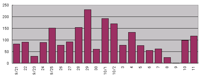 ![]() 2000年和歌山 加太 タカ類通過羽数の推移