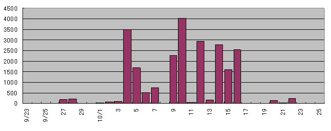 鹿児島高山町 タカの渡り通過羽数推移グラフ