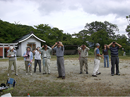 | 六甲山系東端にあり、観察期間中4〜5名にて観察しています。観察期間は9月15日より10月4日までの20日間。(地権者の了解のもと、20日間の連続使用の許可を貰っています。) 通過して行くタカは主にサシバ、ハチクマで他にノスリ、ハイタカも少数ながら渡って行きます。また、タカたちはすでに上昇気流に乗り、上空に来た時はかなりの高度を飛行し通過します。もちろん、気象状況により低く飛来しタカ柱を作ることもあります。 | ||||||