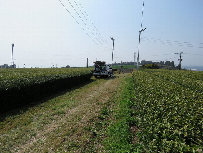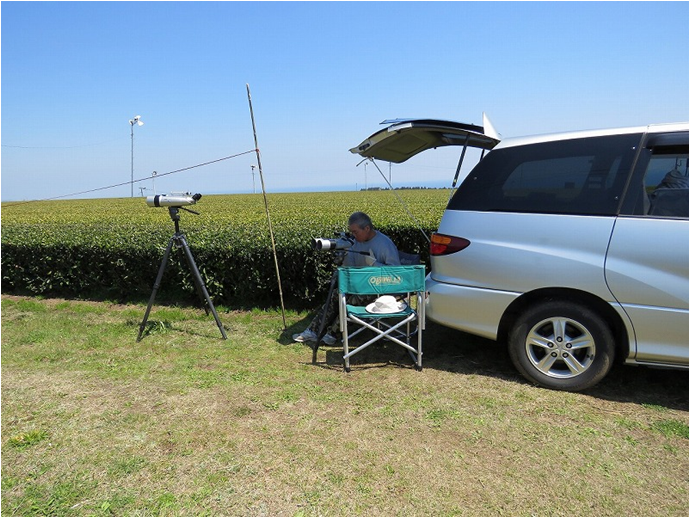 観察場所は園主のご厚意で茶畑の中の道路脇