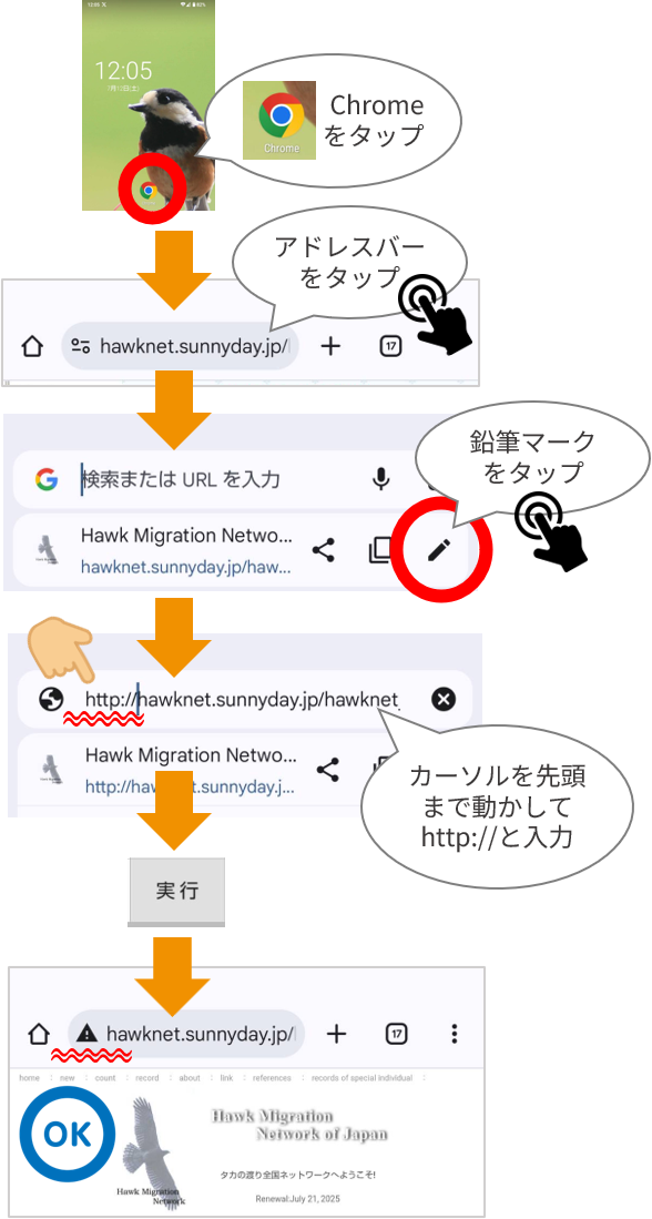 まず、今、開いている画面がどちらの通信方式で hawknet.sunnyday.jp とやりとりしているのかを確認します。
