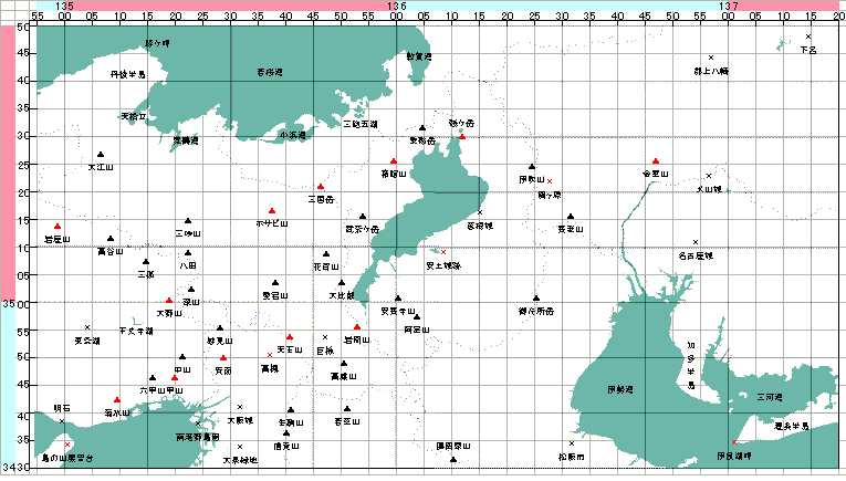 | 地図2(琵琶湖~明石) ∽ | ▲×:サシバ+ハチクマ1日200羽以上記録 | ↑ | ↓ | top | end |