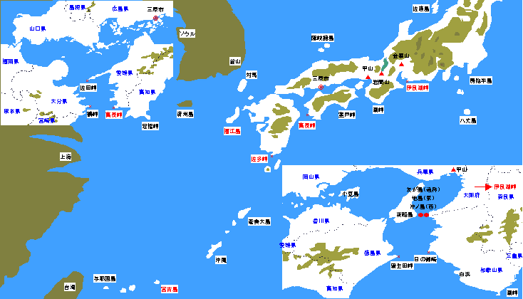 | 10 | 四国上陸 | 神戸-淡路島 ・和歌山-友ケ島-淡路島から鳴門海峡。和歌山から四国東岸(蒲生田岬等)。 | |