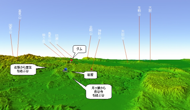 北側の谷(図右側)が月ヶ瀬→長谷寺を結ぶ谷です。